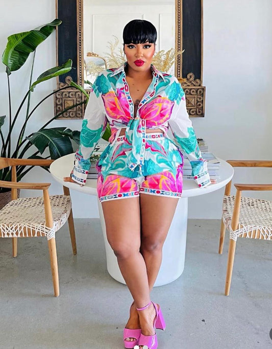 Pink Flowers Short Set